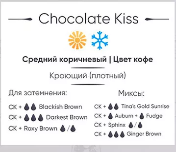 Поскольку основа Chocolate Kiss это красный цвет, то этот пигмент очень красиво заживёт на зелёном типе кожи; это болотные, зелёно-карие, ореховые тёмные, и глаза цвета лаврового листа с матовой бледной кожей.