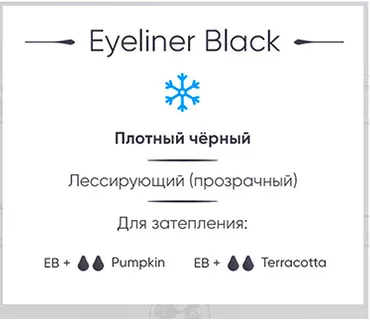 Насыщенно-черный оттенок для татуажа век. Применяется для тонких и чётких линий, подводки глаз, или контуров ресниц.