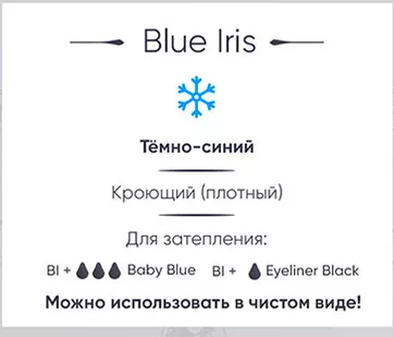 Холодный оттенок цвета ириса, изготовленный преимущественно на основе синего пигмента. Очень насыщенный и глубокий цвет.