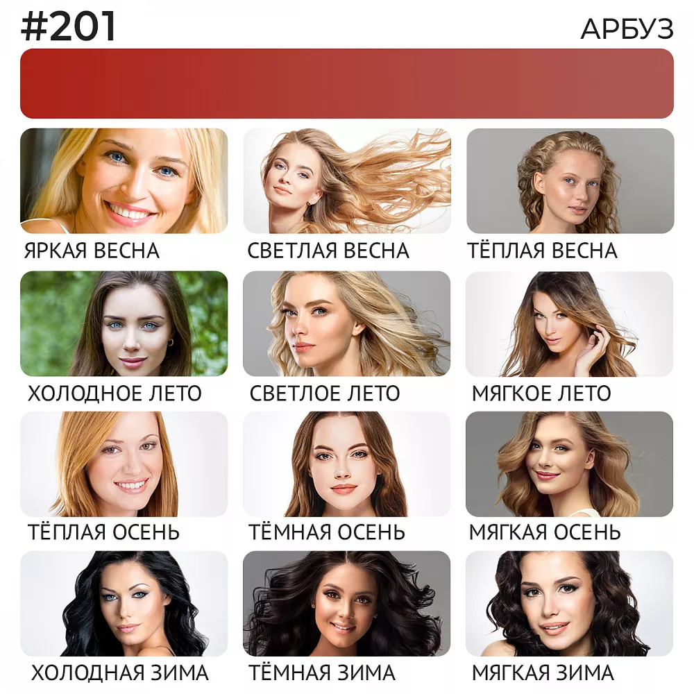 Самый светлый бледно-розовый, базовый цвет. Идеален для смешивания с любыми насыщенными оттенками, подходящими для определённых цветотипов внешности.