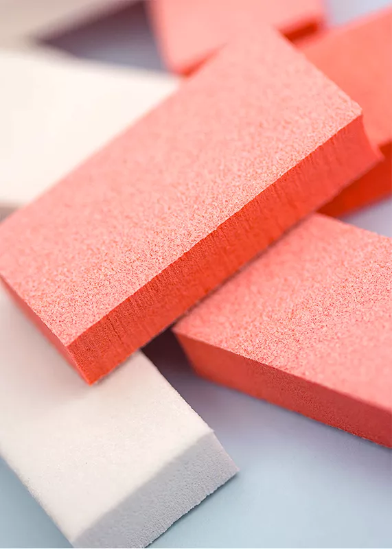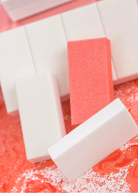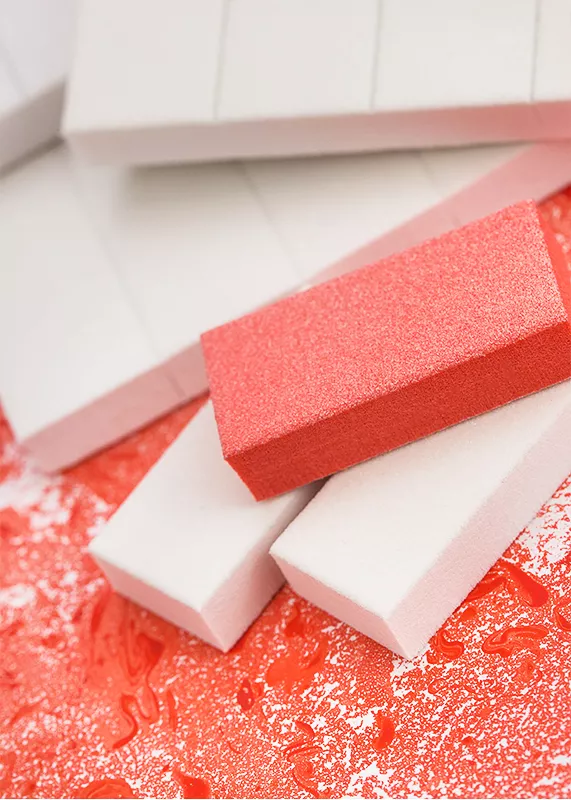 Структура бафа пористая, упругая, немного пружинит, что создает комфорт в работе. Баф прекрасно очищается под проточной водой, чистится щеткой.