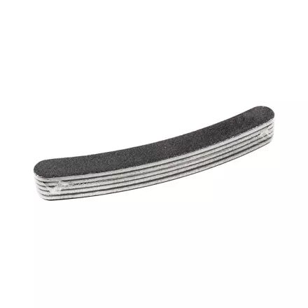 Набор из пяти профессиональных пилок бумеранг для искусственных и натуральных ногтей. Абразивность (Grit size) — 180/240. Для первичной правки длины искусственного ногтя используйте абразивность 180 Grit, для придания желаемой формы ногтевой пластине — 240 Grit. В основе двухсторонней пилки пластик. Цвет черный.