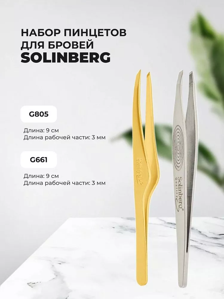 - Пинцет для бровей Solinberg G661, серебристый, наклонное окончание.