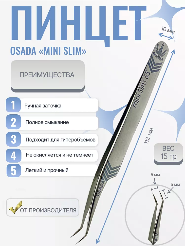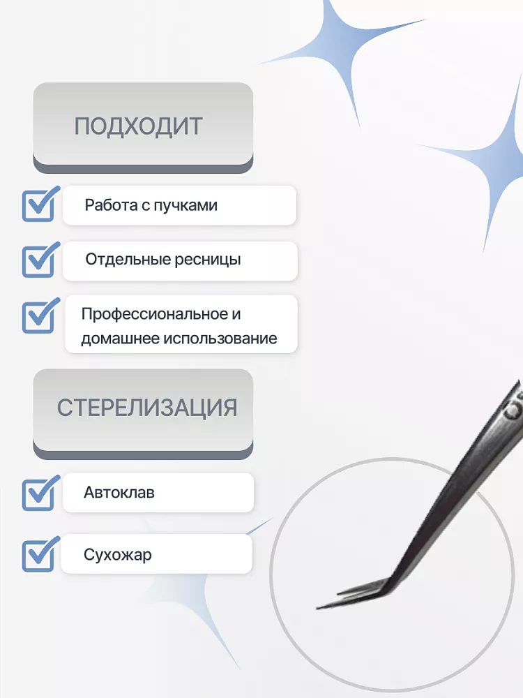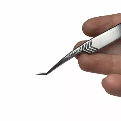 Пинцет очень маневренный, мастер может легко регулировать угол захвата пучка с ленты и далее при постановке на родную ресницу для достижения самого идеального направления ресниц.
