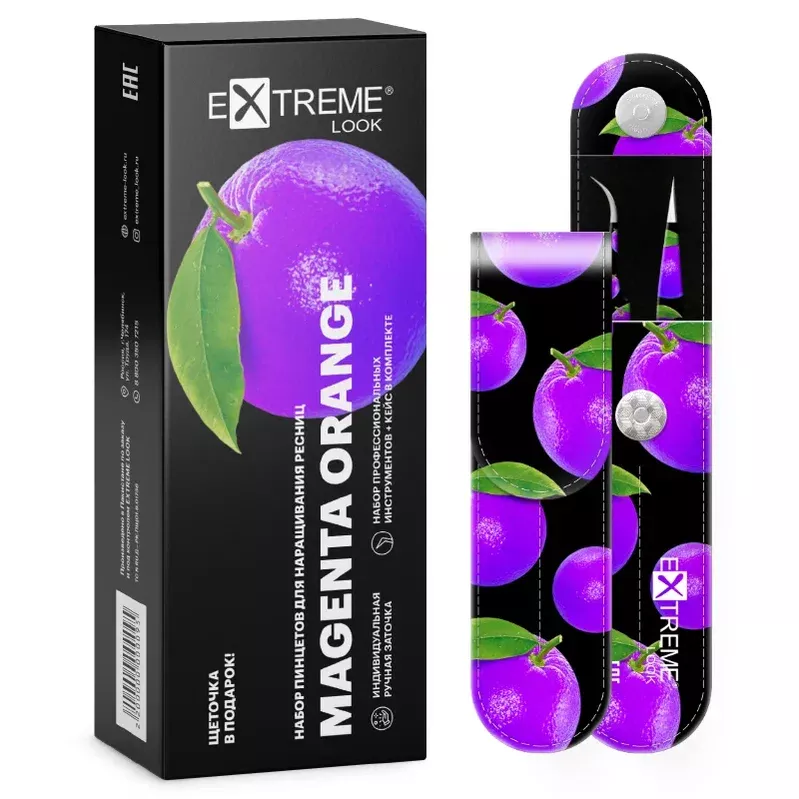 Набор "Orange" включает в себя 2 удобных и легких инструмента - прямой и изогнутый пинцеты. Оба инструмента покрыты лаковым принтом, стойким к повреждениям и коррозии. Оба пинцета комфортно располагаются в кожаном кейсе, имеющим яркое оформление и бархатистую поверхность изнутри, для того ,чтобы обеспечить бережное хранение Вашего инструмента. Кейс оснащен удобной магнитной застежкой.