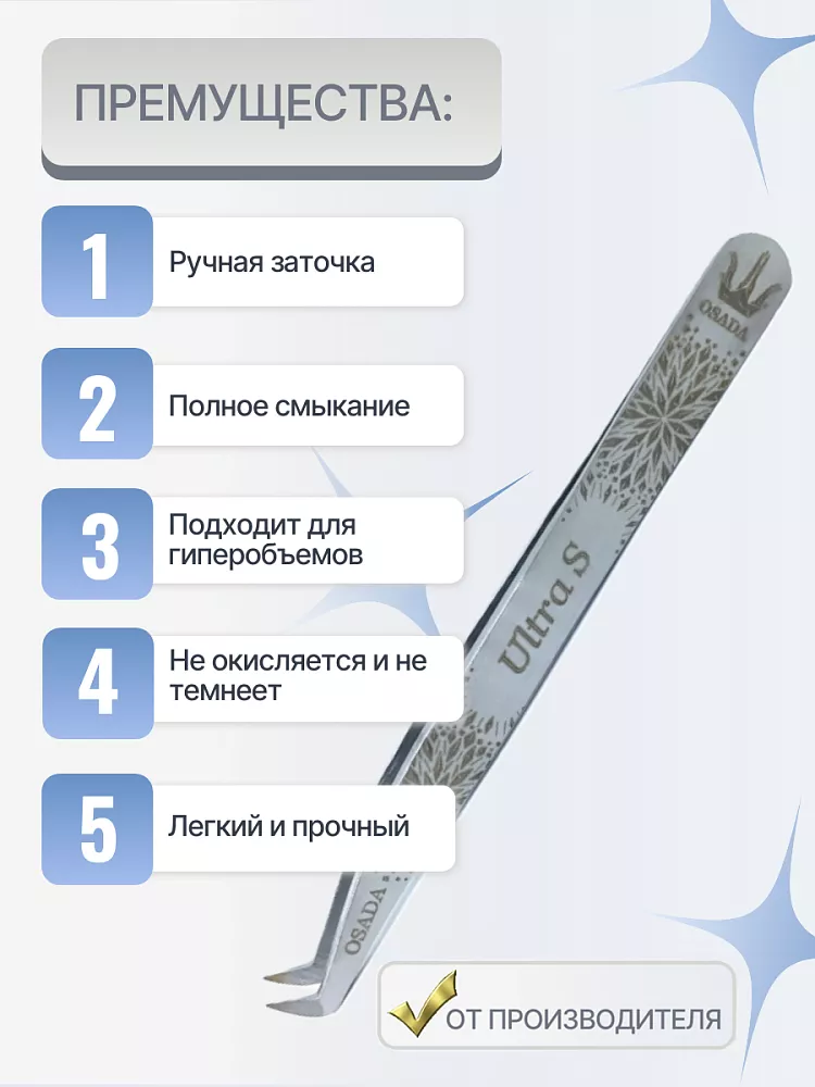 - Пинцет Osada (Осада) Master_Ultra-S (Серебристые)