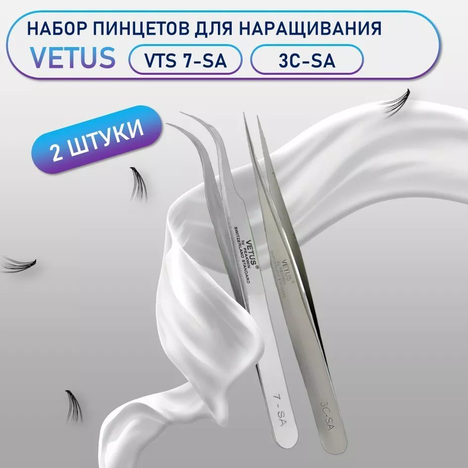 Набор Пинцет Volume line by Extreme look S тип, 7 мм и Пинцет Vetus SS-SA