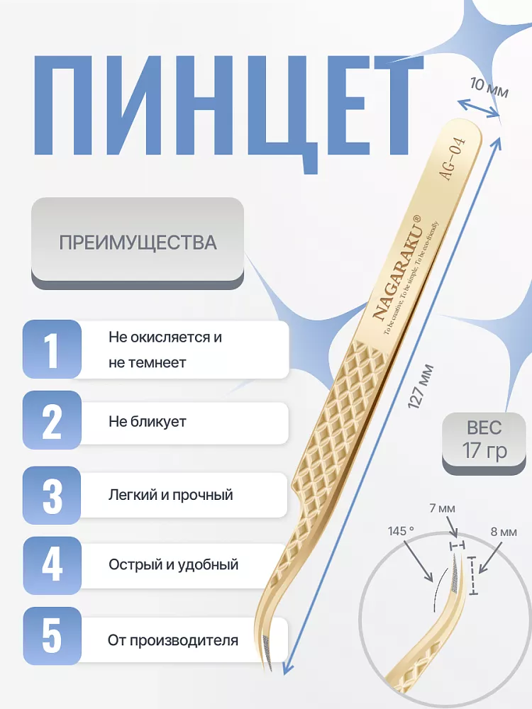 Профессиональные пинцеты от бренда NAGARAKU — незаменимые инструменты для мастеров по наращиванию ресниц. Изготовлены из высококачественной нержавеющей стали.   Преимущества: