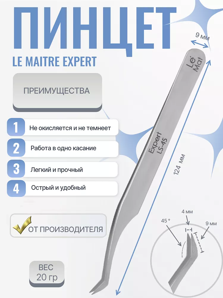 Пинцет профессиональный Le Maitre "Expert" LS 45