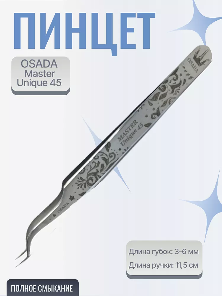 «Master Unique» - легкий пинцет с мягким смыканием створок. Идеален как для классики, так и для объёмного наращивания. У данного пинцета последовательное смыкание (смыкание с "дожатием"): сначала смыкается кончик, затем последовательно вся поверхность.