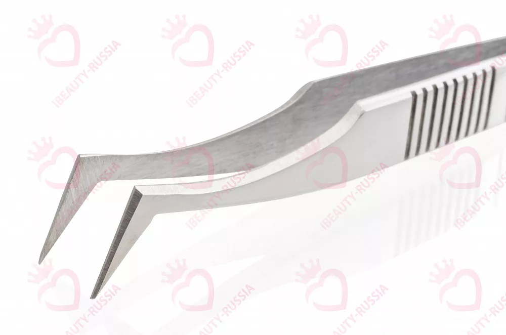 Благодаря загнутой форме кончиков пинцета, имеющих идеальное схождение по всей длине, облегчается и ускоряется процесс захвата одновременно нескольких ресниц для объёмного наращивания ресниц.