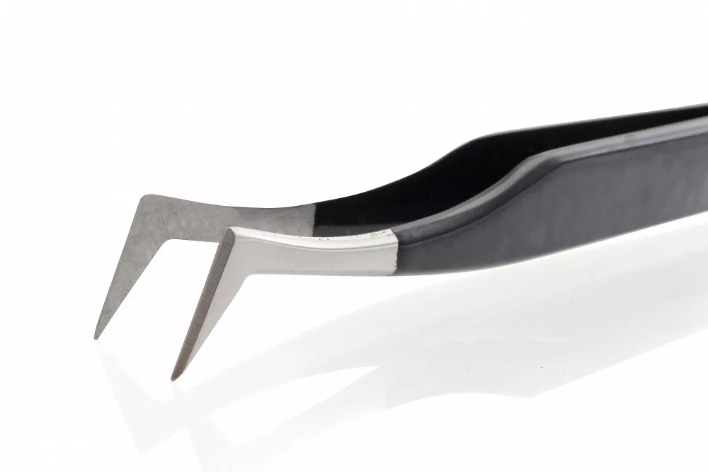Благодаря загнутой форме кончиков пинцета, имеющих идеальное схождение по всей длине, облегчается и ускоряется процесс захвата одновременно нескольких ресниц для объёмного наращивания ресниц.