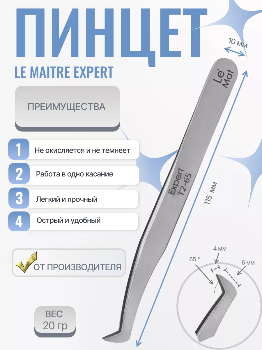 Пинцет профессиональный Le Maitre "Expert" T1 65