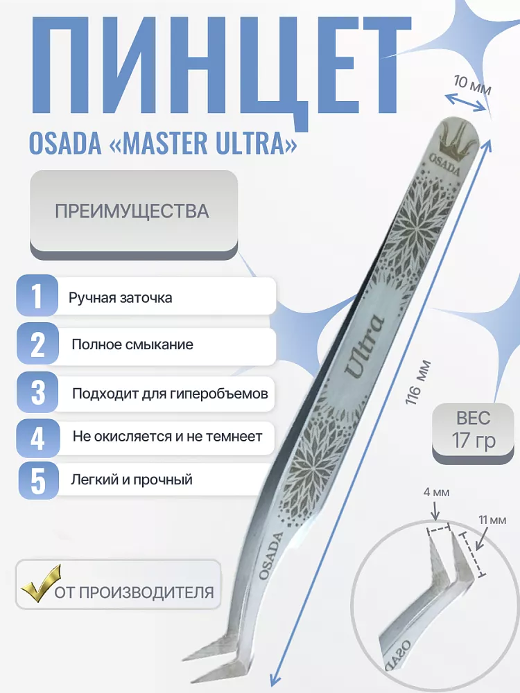 Master-Ultra - Очень "хваткий" и маневренный пинцет с плотным смыканием створок. Идеален для создания гиперобъемов.