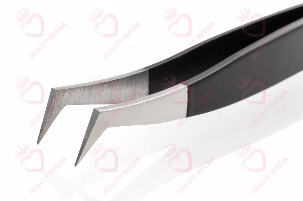 Благодаря загнутой форме кончиков пинцета, имеющих идеальное схождение по всей длине, облегчается и ускоряется процесс захвата одновременно нескольких ресниц для объёмного наращивания ресниц.
