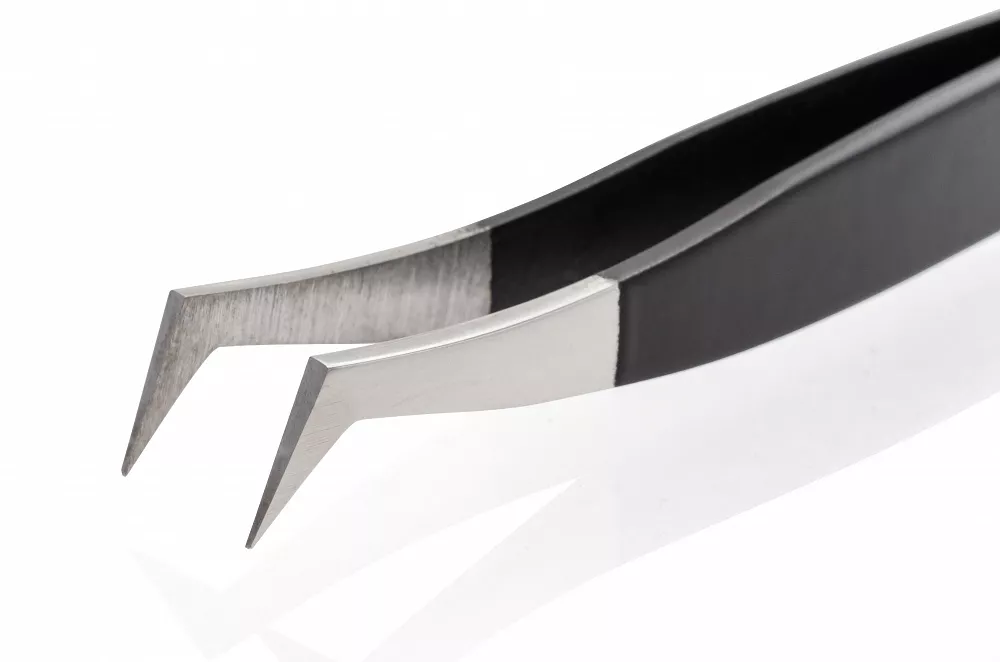 Пинцет выполнен из прочной нержавеющей стали и имеет специальное покрытие, предотвращающее скольжение во время работы.