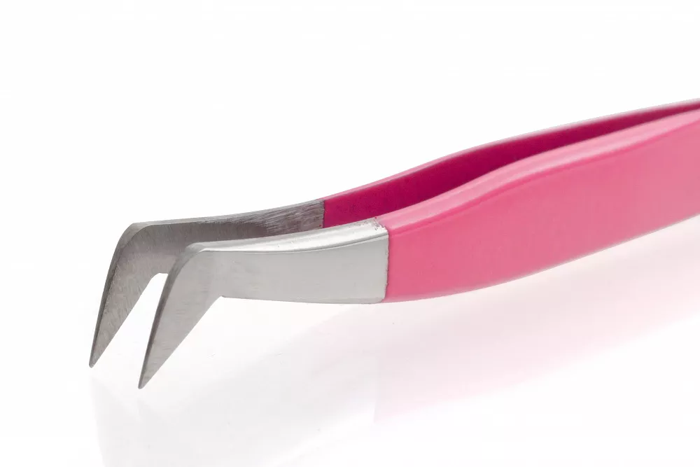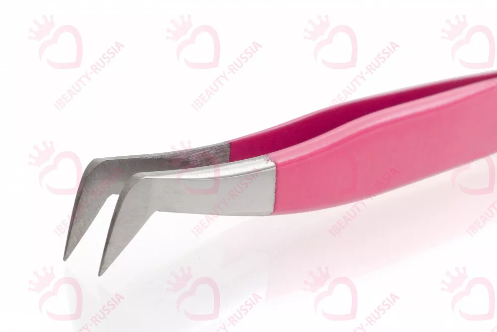 Благодаря загнутой форме кончиков пинцета, имеющих идеальное схождение по всей длине, облегчается и ускоряется процесс захвата одновременно нескольких ресниц для объёмного наращивания ресниц.