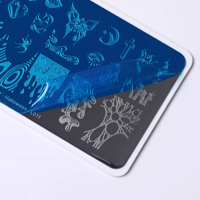 Пластина изготовлена из прочного металла. Она гладкая и блестящая, что позволяет наносить высокоточные рисунки с идеальной проработкой даже самых мелких деталей рисунка. Рисунки можно комбинировать, наносить их разными цветами лаков, добавлять стразы, жемчуг, бульйонки, а также любые другие декоративные элементы.