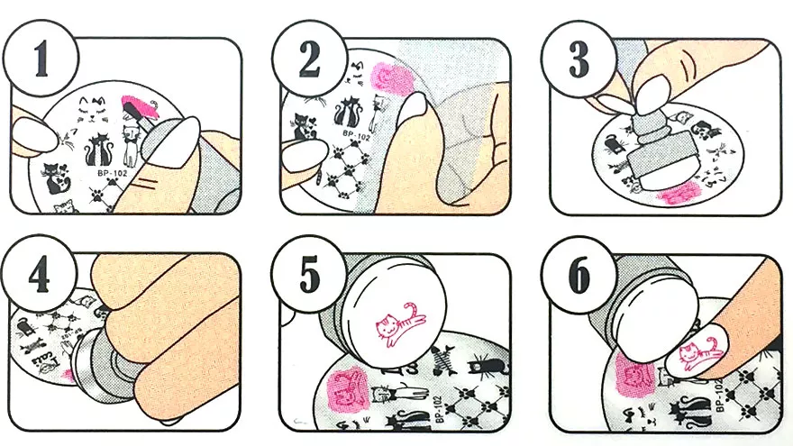 Пластина изготовлена из прочного металла. Она гладкая и блестящая, что позволяет переносить высокоточные рисунки с идеальной проработкой даже самых мелких деталей рисунка. Рисунки можно комбинировать, наносить их разными цветами лаков, добавлять стразы, жемчуг, бульонки, а также любые другие декоративные элементы.