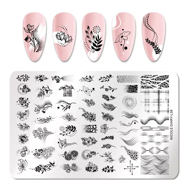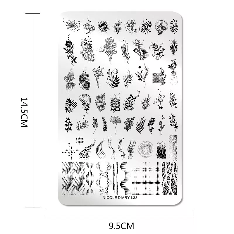 Пластина изготовлена из прочного металла. Она гладкая и блестящая с высоким качеством гравировки, что позволяет наносить высокоточные рисунки с идеальной проработкой даже самых мелких деталей рисунка. Рисунки можно комбинировать, наносить их разными цветами лаков, добавлять стразы, жемчуг, бульонки, а также любые другие декоративные элементы.