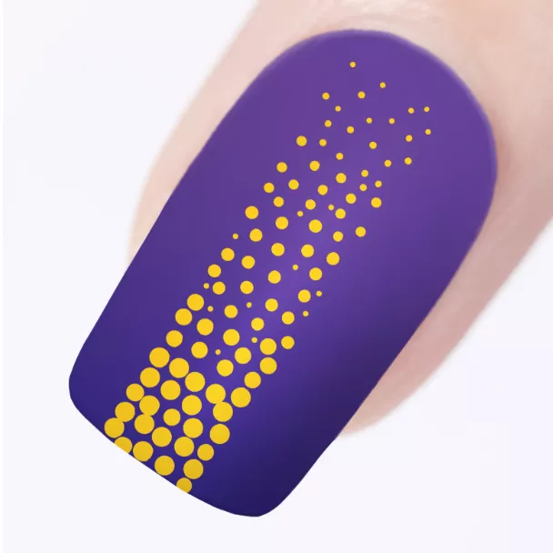 Способ применения: нанести небольшое количество краски или специального высокопигментированного лака для ногтей на пластину с трафаретами, убрать излишки скребочком, придавить подушечку-штамп к рисунку и перенести его на ноготь. После перекрыть рисунок защитным верхним покрытием.