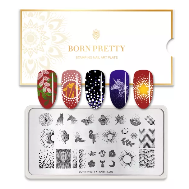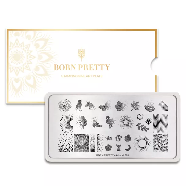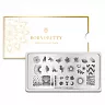Пластина изготовлена из прочного металла. Она гладкая и блестящая, что позволяет наносить высокоточные рисунки с идеальной проработкой даже самых мелких деталей рисунка. Рисунки можно комбинировать, наносить их разными цветами лаков, добавлять стразы, жемчуг, бульйонки, а также любые другие декоративные элементы.