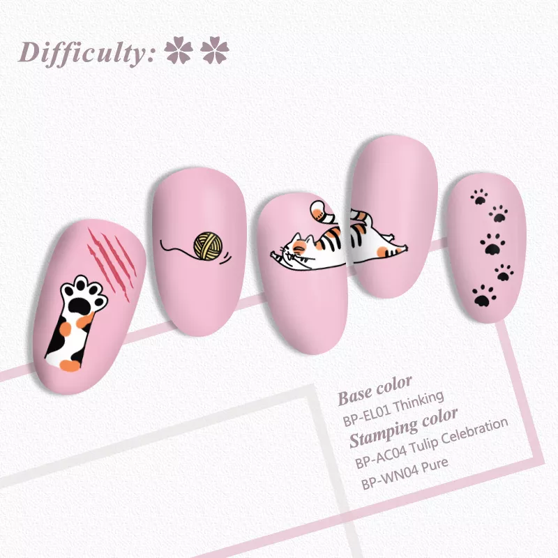 Способ применения: нанести небольшое количество краски или специального высокопигментированного лака для ногтей на пластину с трафаретами, убрать излишки скребочком, придавить подушечку-штамп к рисунку и перенести его на ноготь. После перекрыть рисунок защитным верхним покрытием.