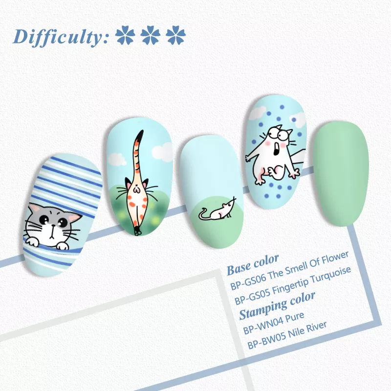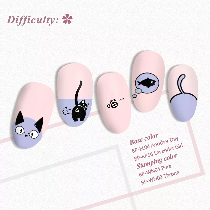 Способ применения: нанести небольшое количество краски или специального высокопигментированного лака для ногтей на пластину с трафаретами, убрать излишки скребочком, придавить подушечку-штамп к рисунку и перенести его на ноготь. После перекрыть рисунок защитным верхним покрытием.