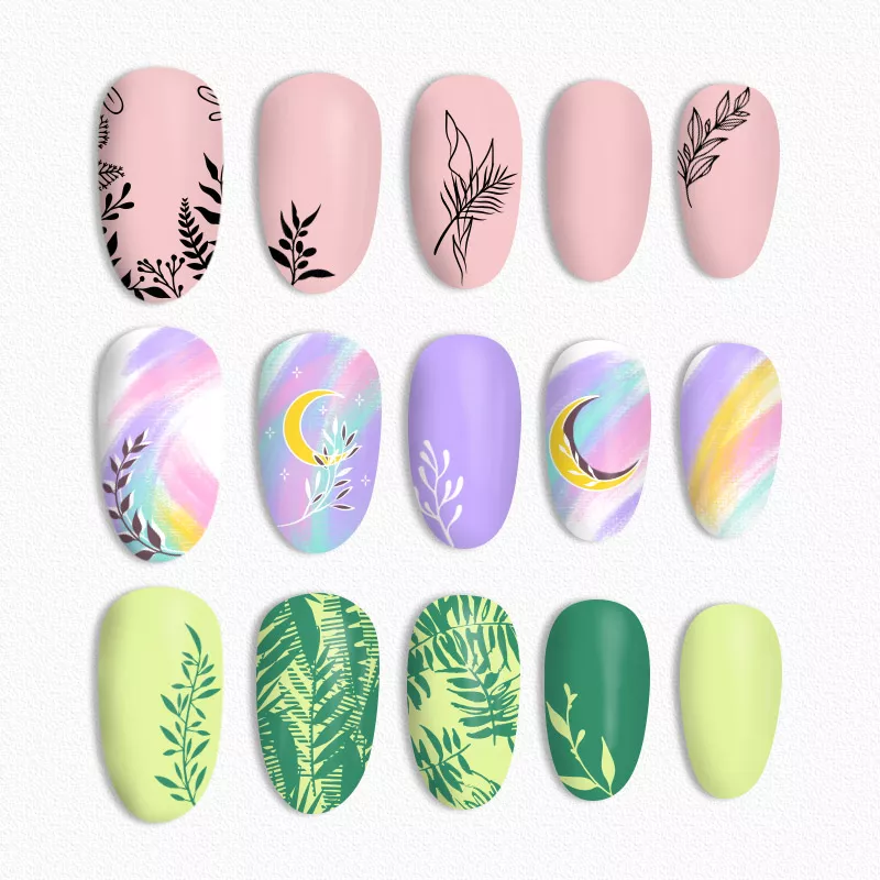 Печатные формы помогают мастеру сделать профессиональный дизайн ногтей, повторить на каждом пальце одинаковый рисунок. Используя стемпинг, можно добиться великолепных результатов за считанные минуты.
