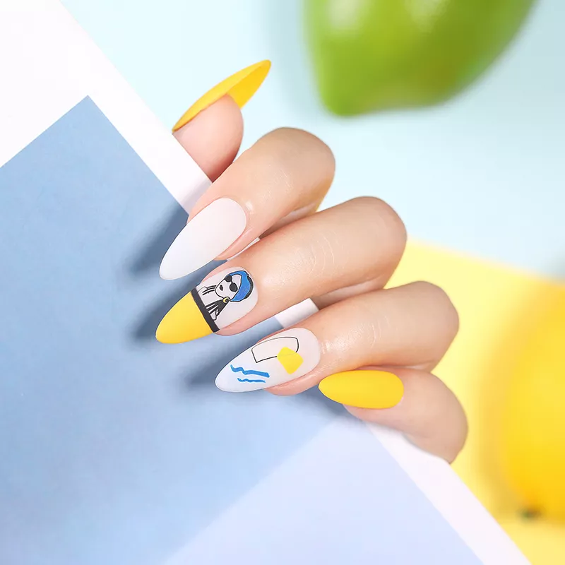 Способ применения: нанести небольшое количество краски или специального высокопигментированного лака для ногтей на пластину с трафаретами, убрать излишки скребочком, придавить подушечку-штамп к рисунку и перенести его на ноготь. После перекрыть рисунок защитным верхним покрытием.