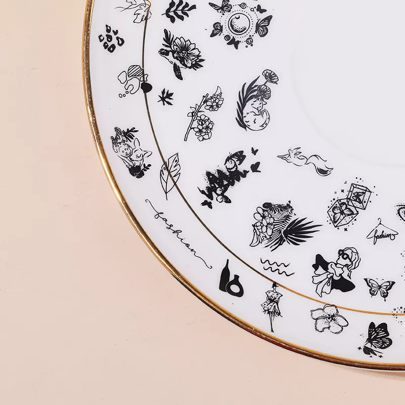 Пластина изготовлена из прочного металла. Она гладкая и блестящая, что позволяет наносить высокоточные рисунки с идеальной проработкой даже самых мелких деталей рисунка. Рисунки можно комбинировать, наносить их разными цветами лаков, добавлять стразы, жемчуг, бульйонки, а также любые другие декоративные элементы.