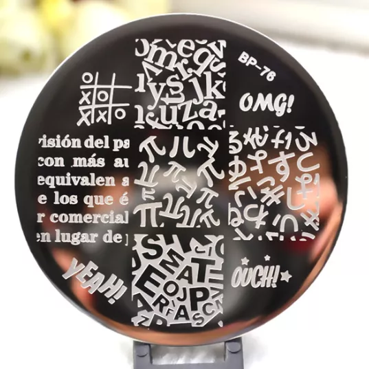 Пластина изготовлена из прочного металла. Она гладкая и блестящая, что позволяет переносить высокоточные рисунки с идеальной проработкой даже самых мелких деталей рисунка. Рисунки можно комбинировать, наносить их разными цветами лаков, добавлять стразы, жемчуг, бульонки, а также любые другие декоративные элементы.