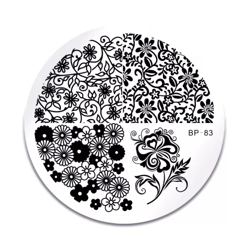 Пластина изготовлена из прочного металла. Она гладкая и блестящая, что позволяет переносить высокоточные рисунки с идеальной проработкой даже самых мелких деталей рисунка. Рисунки можно комбинировать, наносить их разными цветами лаков, добавлять стразы, жемчуг, бульонки, а также любые другие декоративные элементы.