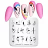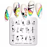 Способ применения: нанести небольшое количество краски или специального высокопигментированного лака для ногтей на пластину с трафаретами, убрать излишки скребочком, придавить подушечку-штамп к рисунку и перенести его на ноготь. После перекрыть рисунок защитным верхним покрытием.