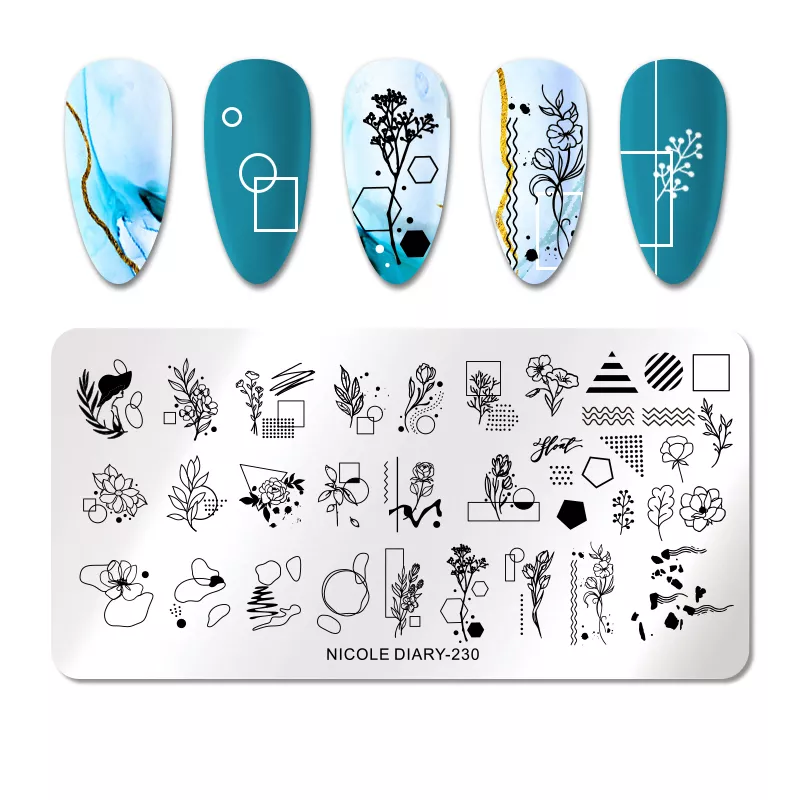 Пластина для стемпинга Nicole Diary - печатная форма для нанесения рисунков на ногти (стемпинга).