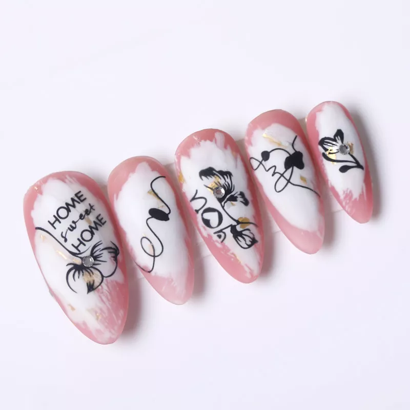 Способ применения: нанести небольшое количество краски или специального высокопигментированного лака для ногтей на пластину с трафаретами, убрать излишки скрапером, придавить подушечку-штамп к рисунку и перенести его на ноготь. После перекрыть рисунок защитным верхним покрытием.