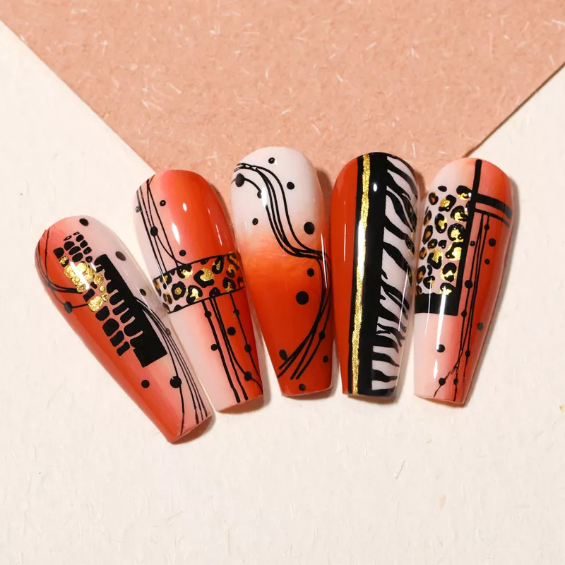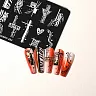 Способ применения: нанести небольшое количество краски или специального высокопигментированного лака для ногтей на пластину с трафаретами, убрать излишки скрапером, придавить подушечку-штамп к рисунку и перенести его на ноготь. После перекрыть рисунок защитным верхним покрытием.