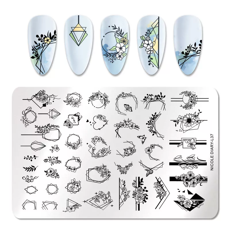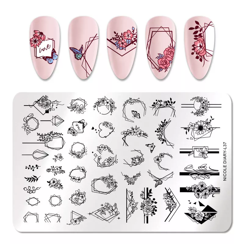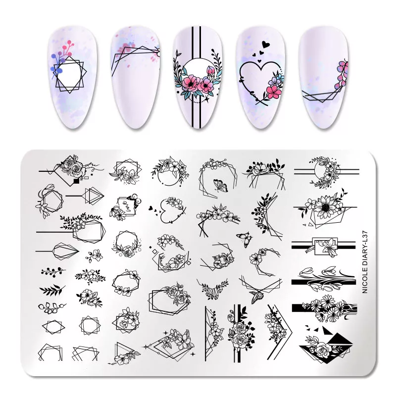 Пластина для стемпинга Nicole Diary - печатная форма для нанесения рисунков на ногти (стемпинга).