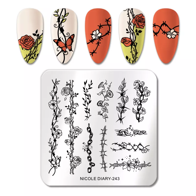 Пластина для стемпинга Nicole Diary - печатная форма для нанесения рисунков на ногти (стемпинга).