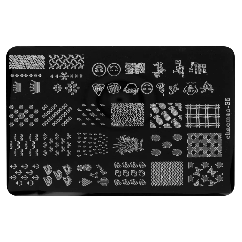 Стемпинг для ногтей – легкий, доступный и стильный nail-дизайн. Благодаря трафаретам для стемпинга каждая девушка сможет самостоятельно создавать сложнейшие принты и разнообразные художественные композиции на ноготках. Разнообразные принты, нанесенные на трафареты, позволят воплотить в жизнь самые смелые идеи по искусству дизайна на ногтях. Главное его отличие в том, что он имеет утяжеляющую основу. Мастеру,  во время работы, не нужно удерживать его, под своим весом трафарет плотно прилегает к столу. Размер трафарета: 9,5x14,5см.