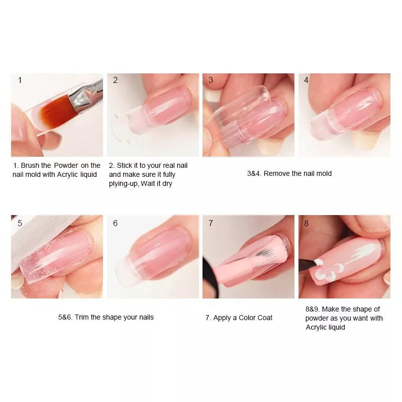 Пудра мелко-дисперсионная, благодаря чему отлично растворяется мономером до однородной консистенцией, равномерно распределяется по поверхности ногтя, создавая гладкую поверхность без пузырей и трещин. Акриловое покрытие прочное и пластичное, мягко опиливается