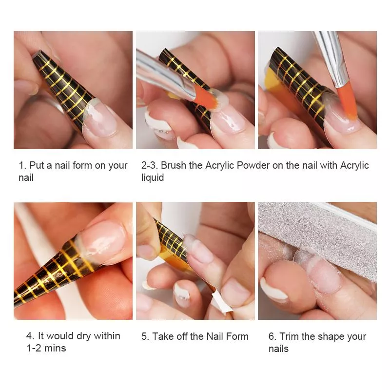 взаимодействуя со специальной жидкостью - мономером (ликвидом), пудра превращается в пластичный материал, полимеризующийся на воздухе без использования лампы.