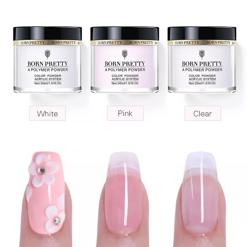 Акриловая пудра - полимерный порошок, который, взаимодействуя со специальной жидкостью - мономером (ликвидом), превращается в пластичный материал, полимеризующийся на воздухе без использования лампы.