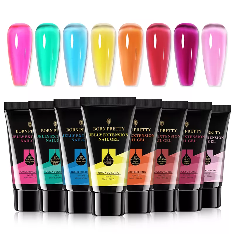 Jelly от Born Pretty - серия витражных цветных полигелей. Полигели обладают оптимальными вязкостью, плотностью и податливостью материала, которые обеспечивают комфортное нанесение при минимальном расходе. Gelly gel быстро и качественно полимеризуется, обеспечивает плотный и минимальный опил