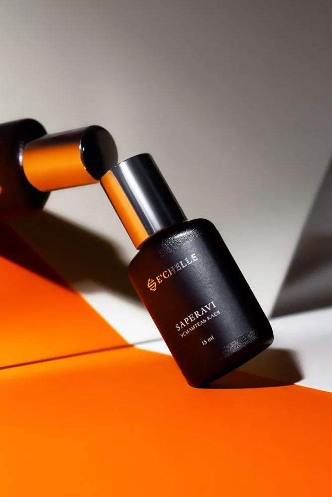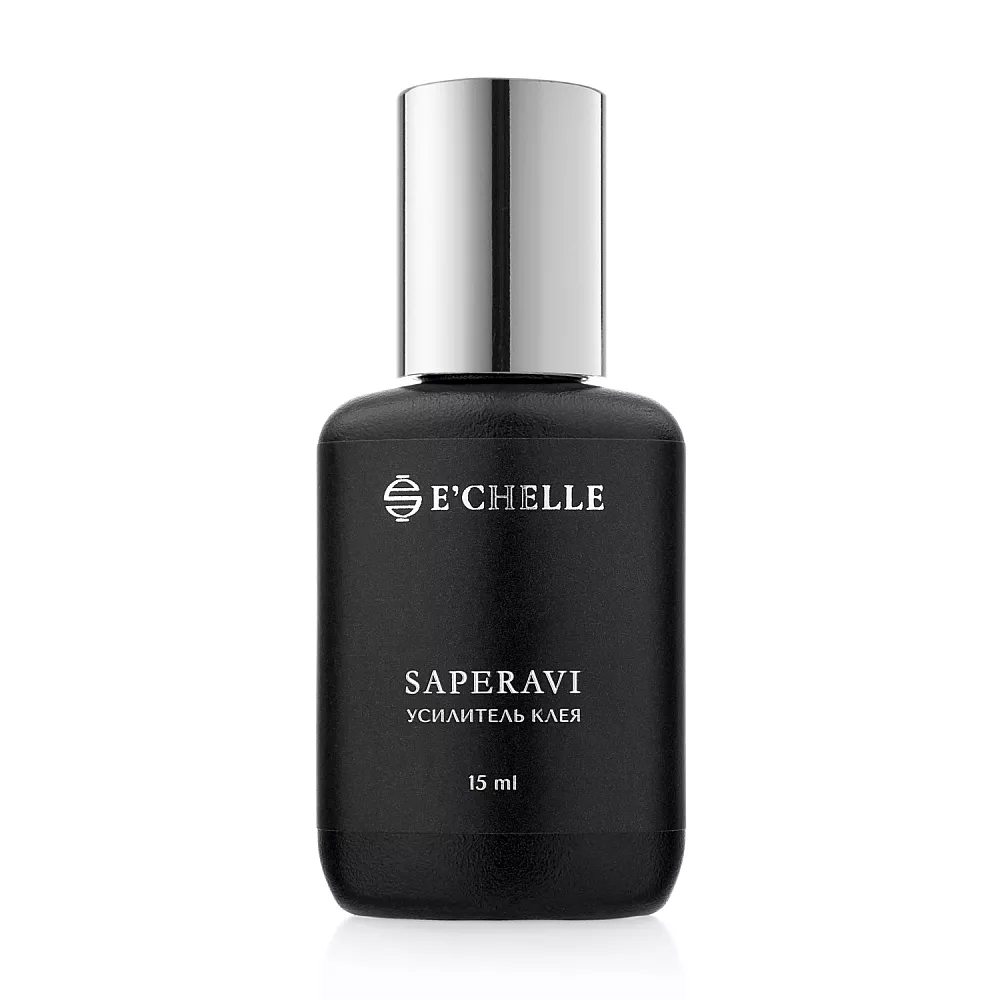Новый усилитель Саперави от Э'шель обладает уникальной формулой, которая ускоряет работу клея, улучшает сцепку и дает дополнительную гарантию на носку ресниц.