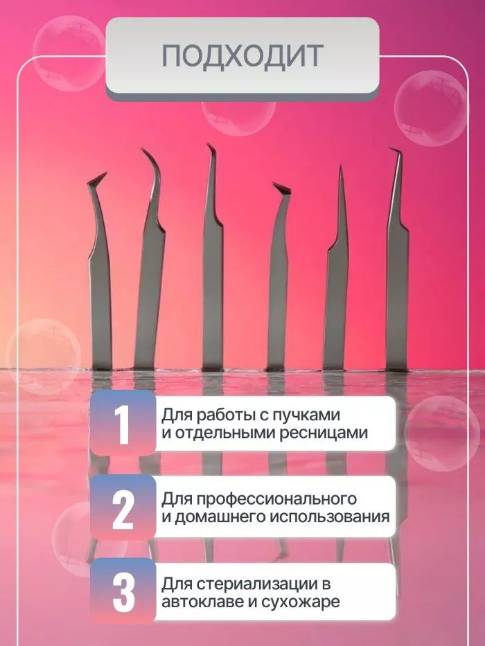 Удобная форма пинцета позволяет легко захватывать реснички без ущерба для их структуры и формы и моделировать все виды наращивания, от классического до гиперобъемного.