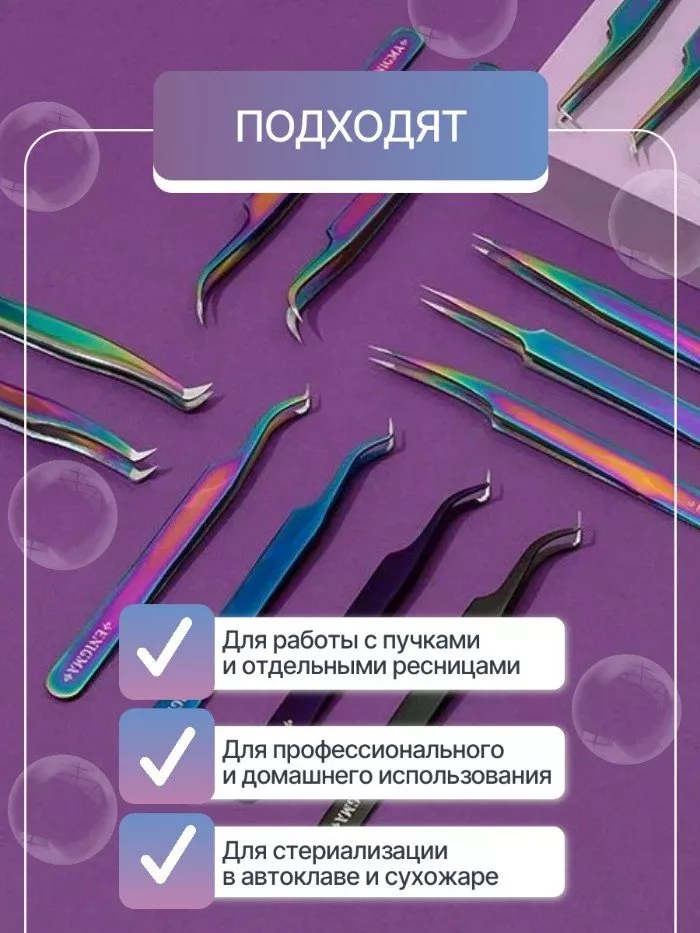 Острые кончики. Помогают точно выделять родные ресницы, захватывать отдельные искусственные волоски и пучки. Это ускоряет процесс работы мастера.