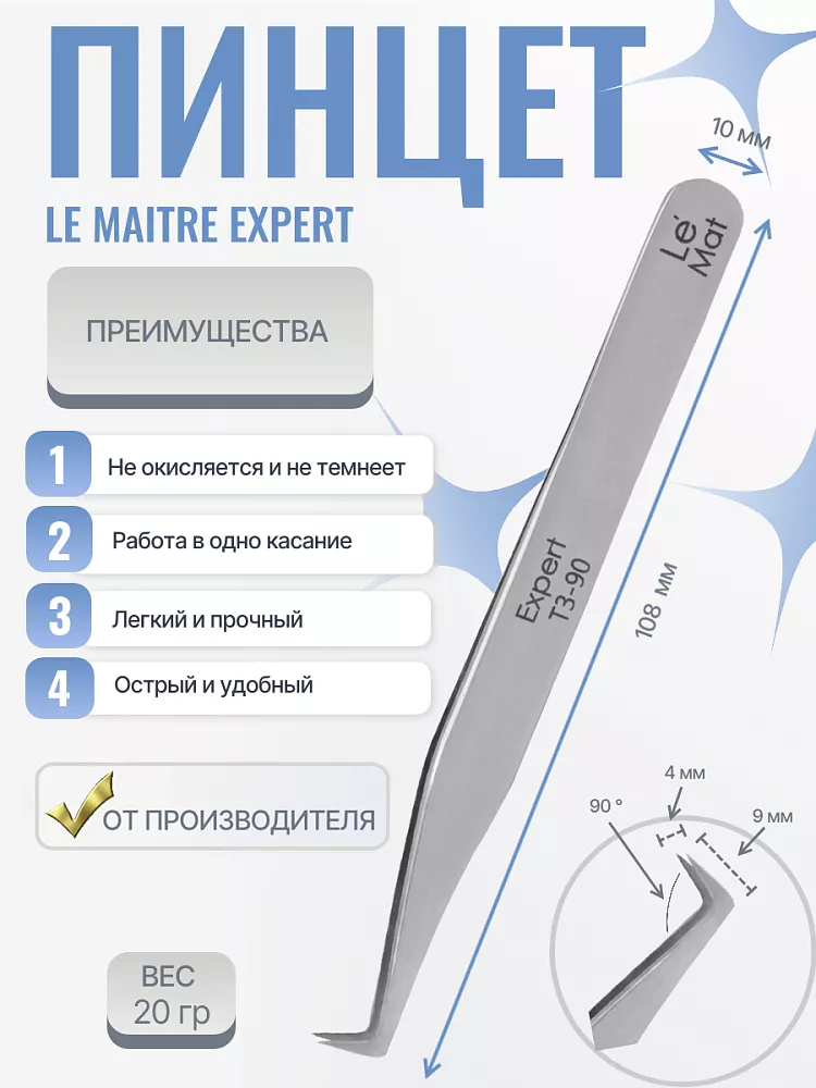 - Пинцет Le Maitre Expert T3 90.