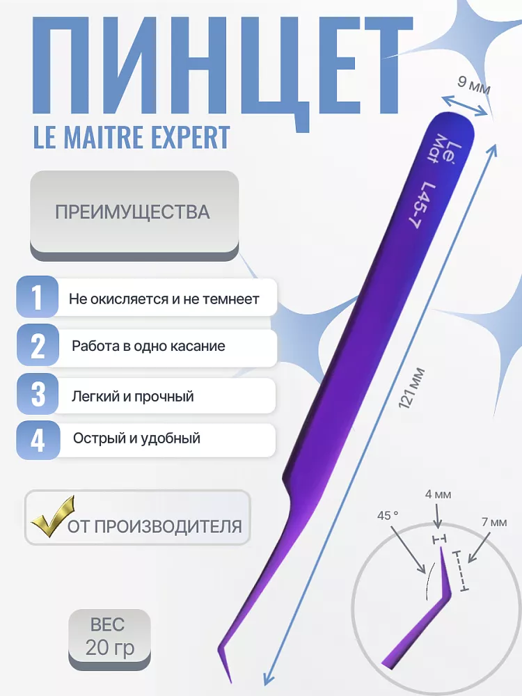 Обозначение на пинцете его типа, угла и длины ножки, позволит точнее ориентироваться при выборе подходящего инструмента.