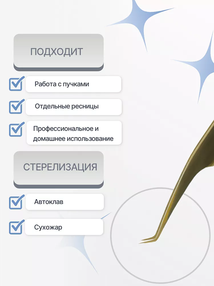 Обозначение на пинцете его типа, угла и длины ножки, позволит точнее ориентироваться при выборе подходящего инструмента.